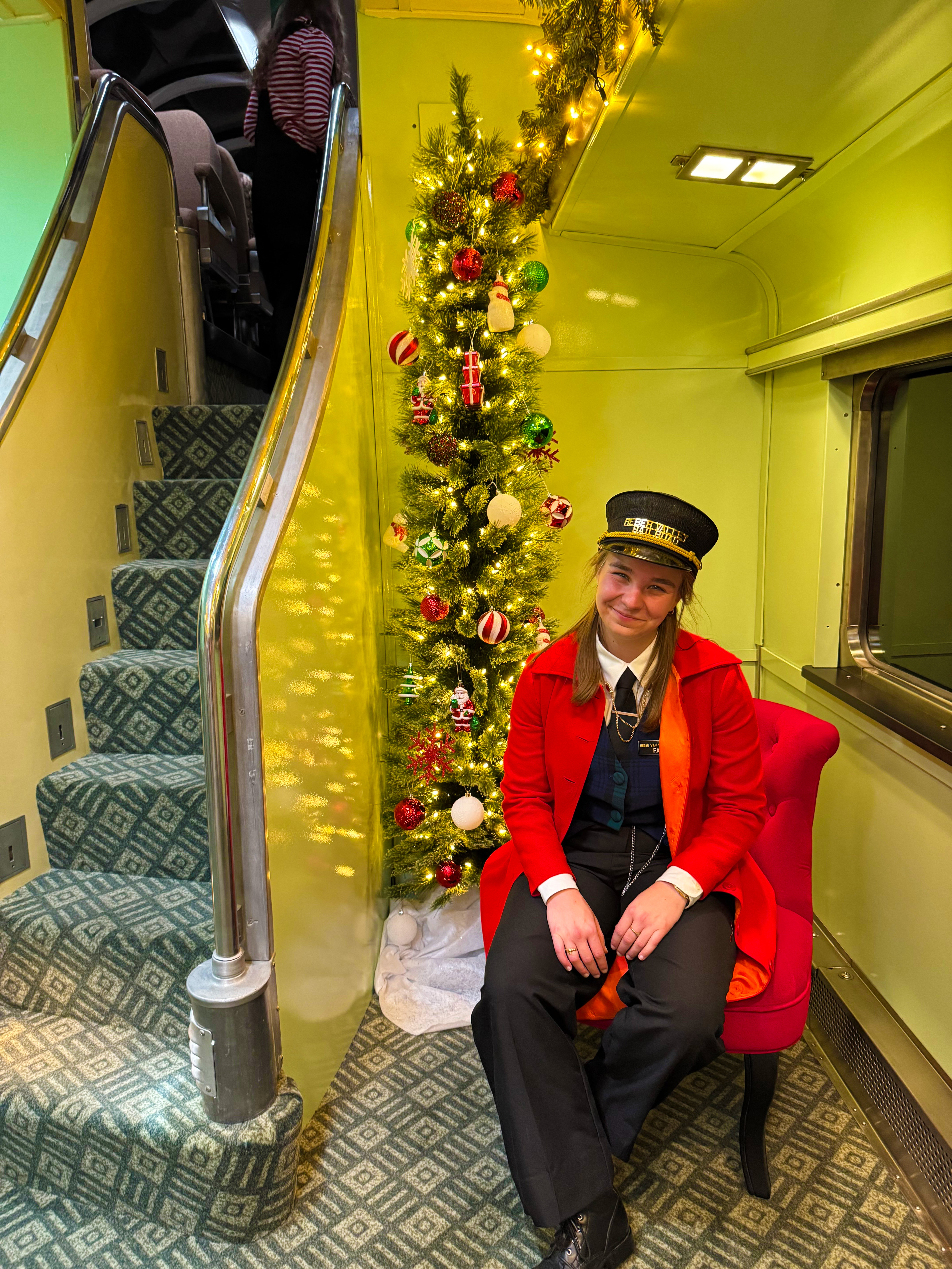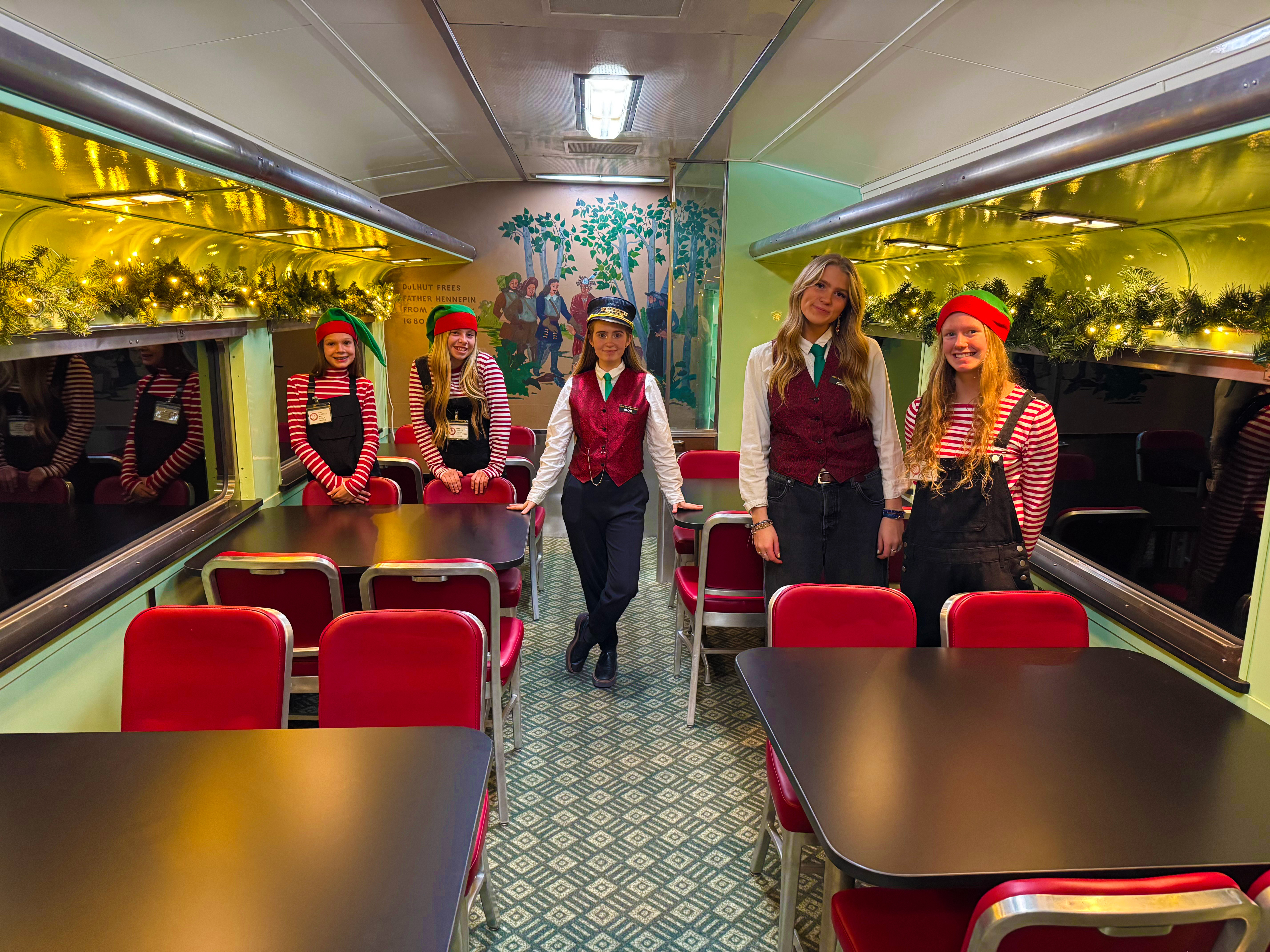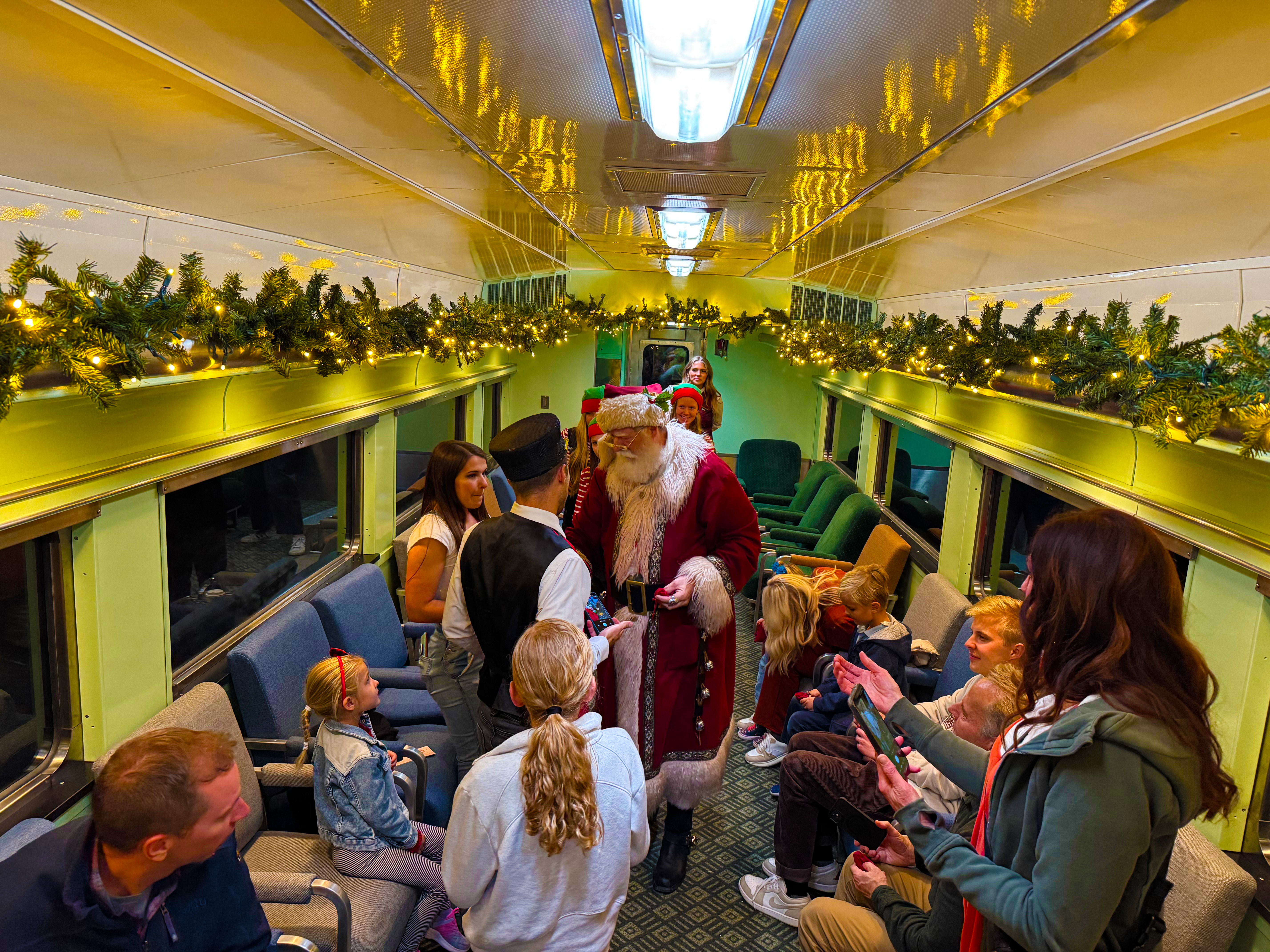 We have added a new car to the 2025 North Pole Express! This beautifully restored 1947 "Dome" car is ready to go. It has 64 seats as follows: 24 seats in the raised "Dome roof". These are sold in groups of four seats. The "Lounge" section has 20 seats, which will be sold individually. The other end of the car has 20 seats in tables of four. These are also sold in groups of four.